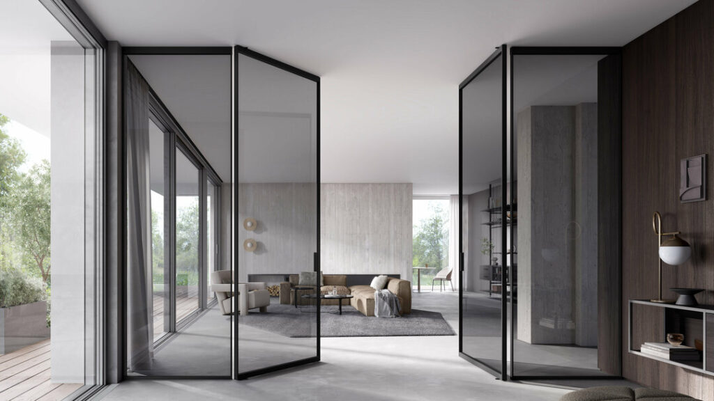 Modern statement doors that rotate on a central hinge, combining style with a bold architectural look.