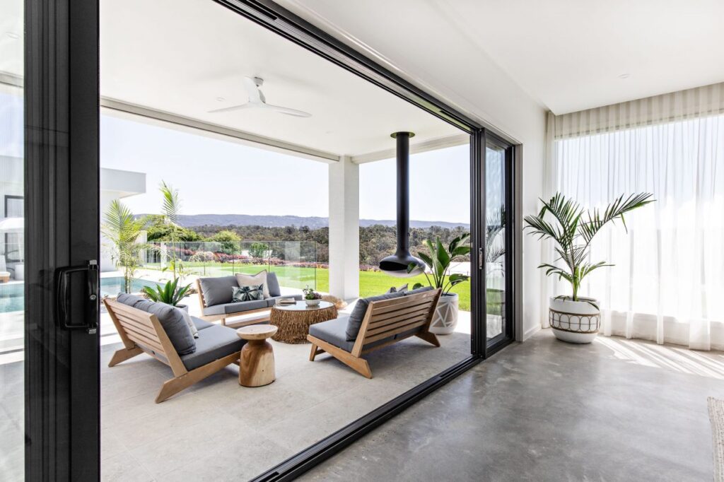 Elegant folding panels that open fully to connect indoor and outdoor living areas.
